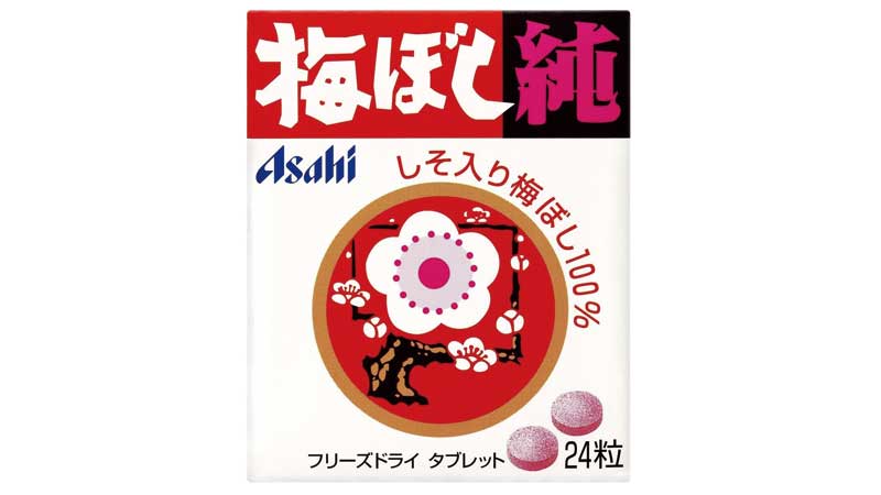 アサヒグループ食品が発売する「梅ぼし純」は、1976年の登場以来、長く愛され続けている“梅干しそのまま”のタブレットです。しそ葉入りの梅干し果肉をそのままフリーズドライし、一粒ずつタブレットにしたシンプルなお菓子。香料・着色料・保存料を一切使用せず、素材そのものの味わいを大切にしているのが特徴です。