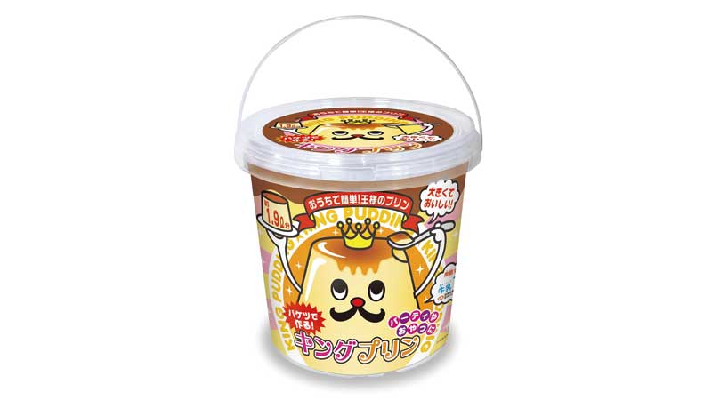 キングプリンは、その名の通り「王様級」のサイズ感が最大の特徴の巨大プリンです。一般的なカッププリンとは比べものにならないボリュームで、家庭で作れるプリンキットとして販売されており、完成すると約1.9リットル、通常のプリンおよそ20個分にも相当します。付属の大きな容器にプリンの素と牛乳を入れて混ぜ、冷蔵庫で冷やすだけという手軽さも魅力で、特別な調理技術は必要ありません。