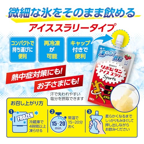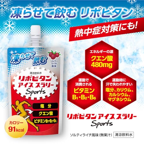 大正製薬の「リポビタンアイススラリー Sports ソルティライチ風味」は、暑い季節や運動時の水分・栄養補給を目的に開発された、凍らせて飲むタイプのスポーツサポート飲料です。ドリンクの中に微細な氷が含まれた“アイススラリー”状態になっており、シャリっとした食感と強い冷涼感が特徴です。一般的なスポーツドリンクとは異なり、飲み物でありながら体を内側から効率よく冷やせる点が注目されています。